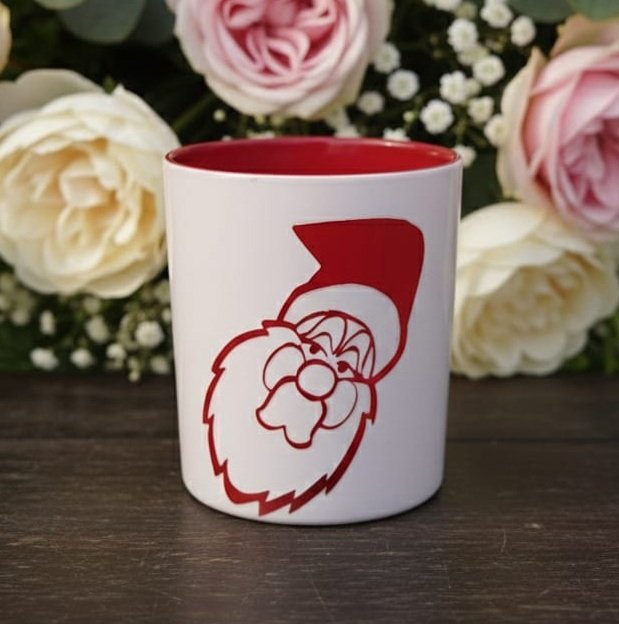 Add joyful festive vibes to your décor with our 200 ml Santa Claus Print Glass Jar, specially designed to bring warmth and holiday cheer to any space. Crafted from premium-quality glass, this jar features a classic white exterior with a charming red Santa Claus illustration and a rich red inner finish that beautifully enhances the candle’s glow.